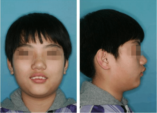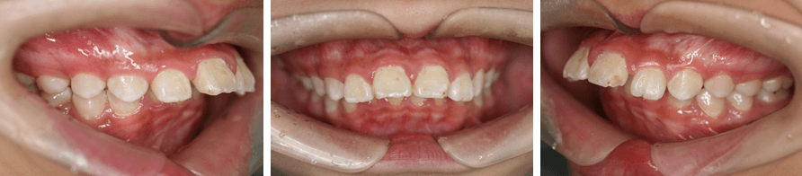 因为上门牙前突,她的上嘴唇突出特别明显。同时还存在牙齿深覆合的问题,需要打开咬合。