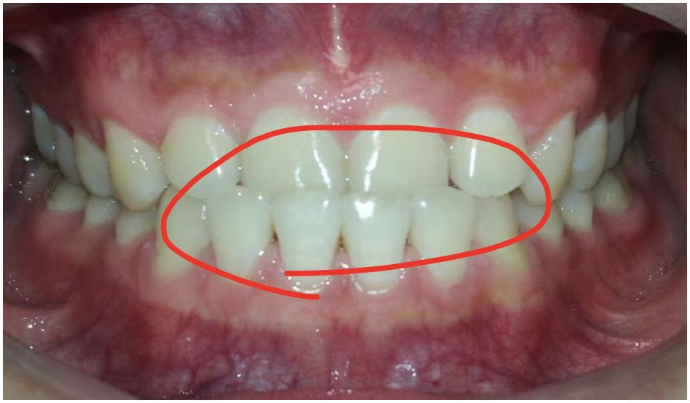 这个男生有前牙反颌问题,上门牙有明显的内凹。